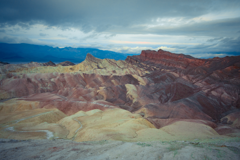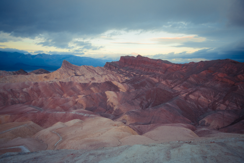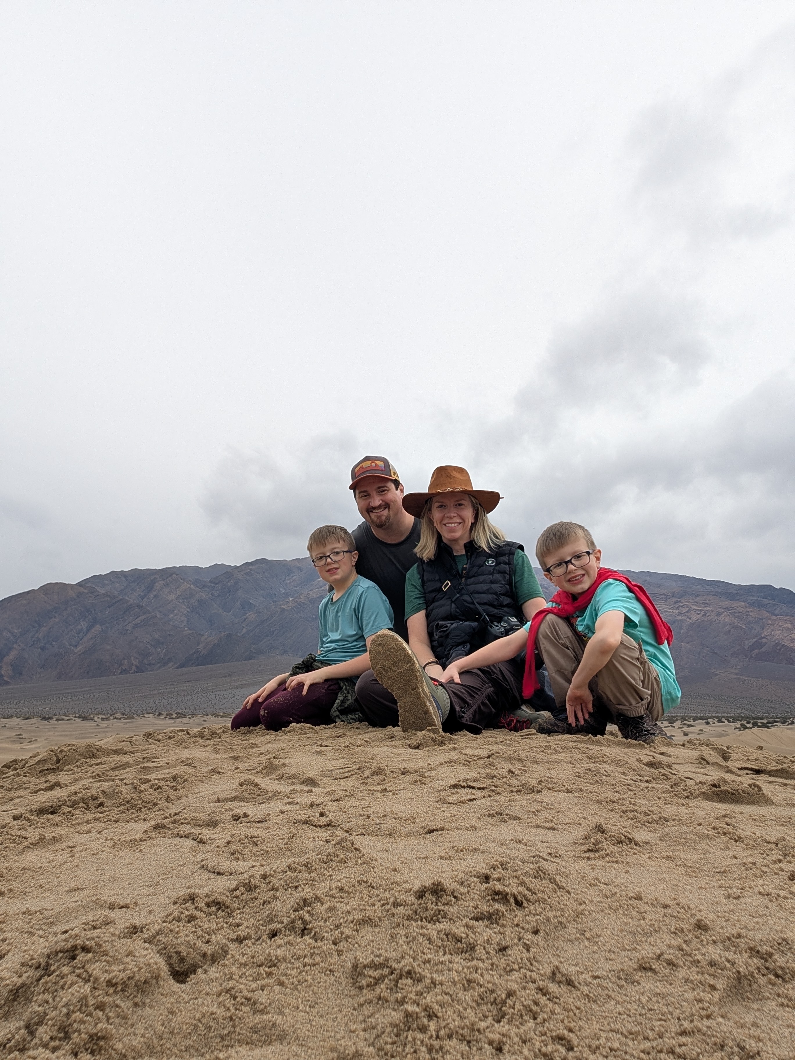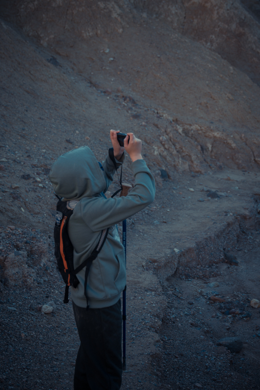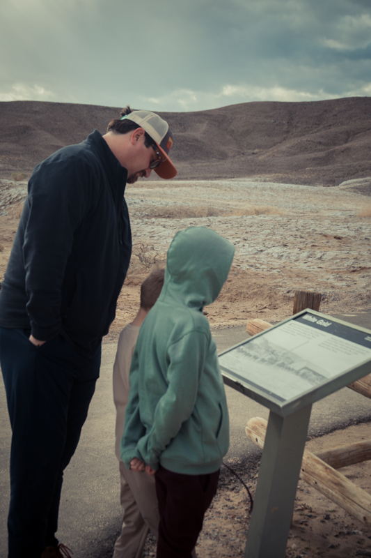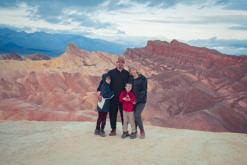 We started the morning at sunrise at Zabriskie Point. The clouds hung low, softening the dramatic ridgelines we had imagined, but there was something peaceful about it. A quiet start. A reminder that this trip wasn’t about perfect conditions. It was about being there.