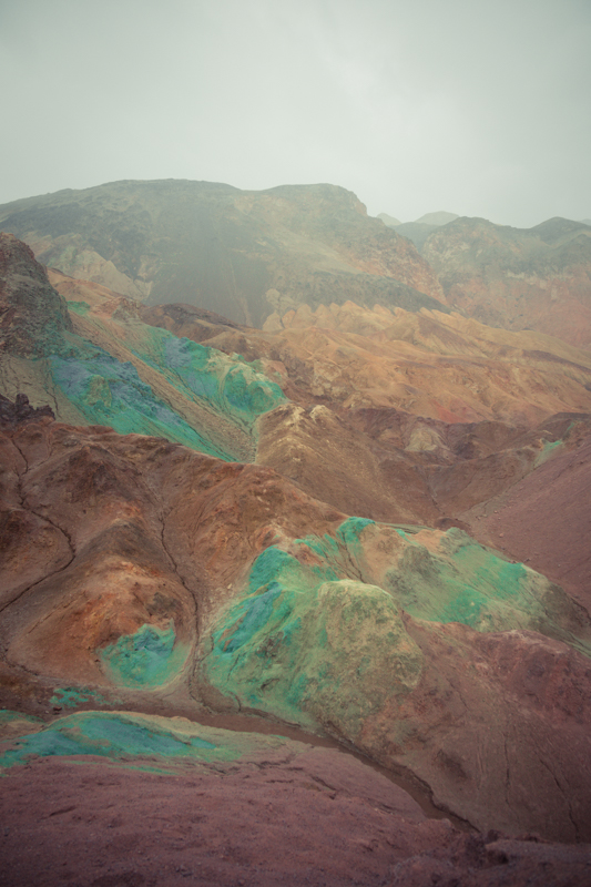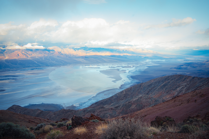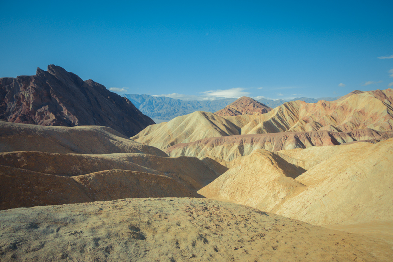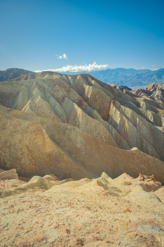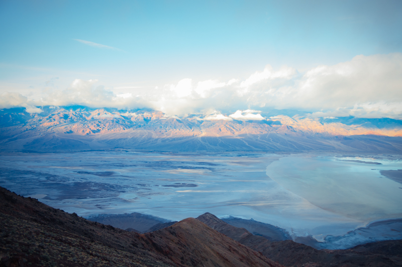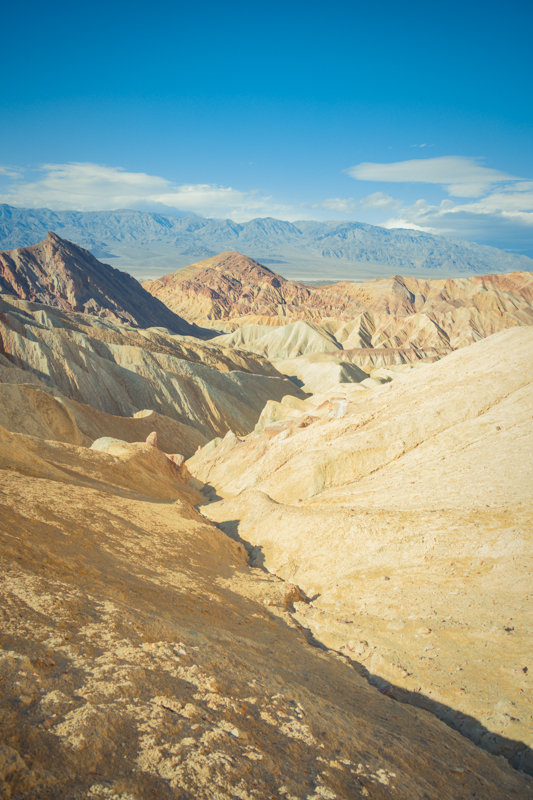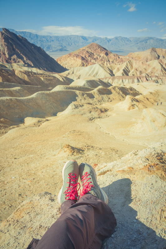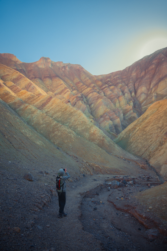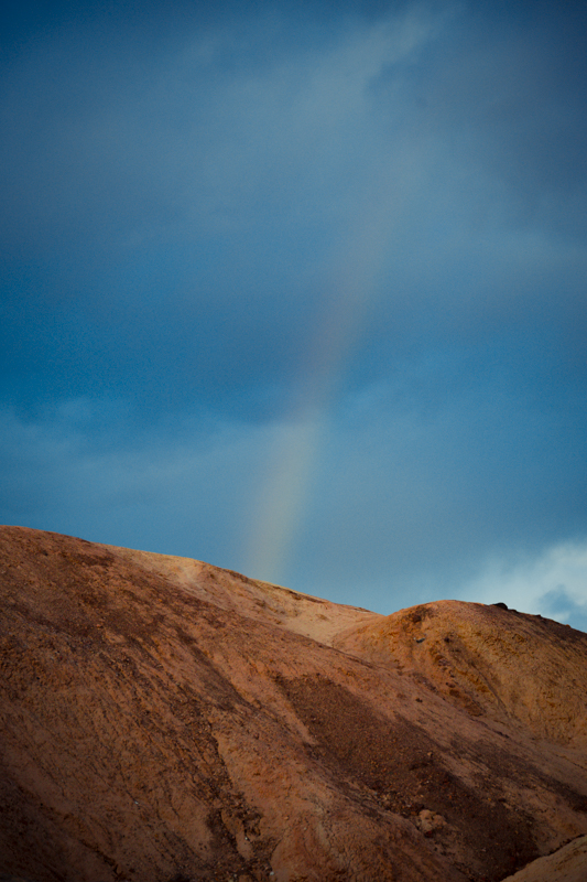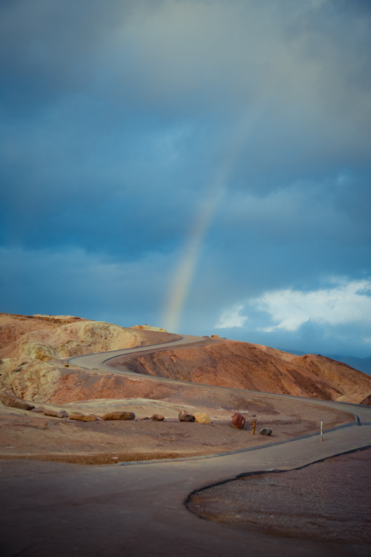 The next morning, we gave Zabriskie Point one more try at sunrise. And this time, it delivered. The clouds lifted just enough to reveal the full texture of the landscape and then, as if on cue, a rainbow stretched across the sky. It felt like the valley was giving us its final goodbye. We also drove up to Dante’s View, standing over 5,000 feet above the valley floor, taking in the full expanse of the park: salt flats, mountains, and all the places we had just explored. It’s one of the few places where you can truly grasp the scale of Death Valley.