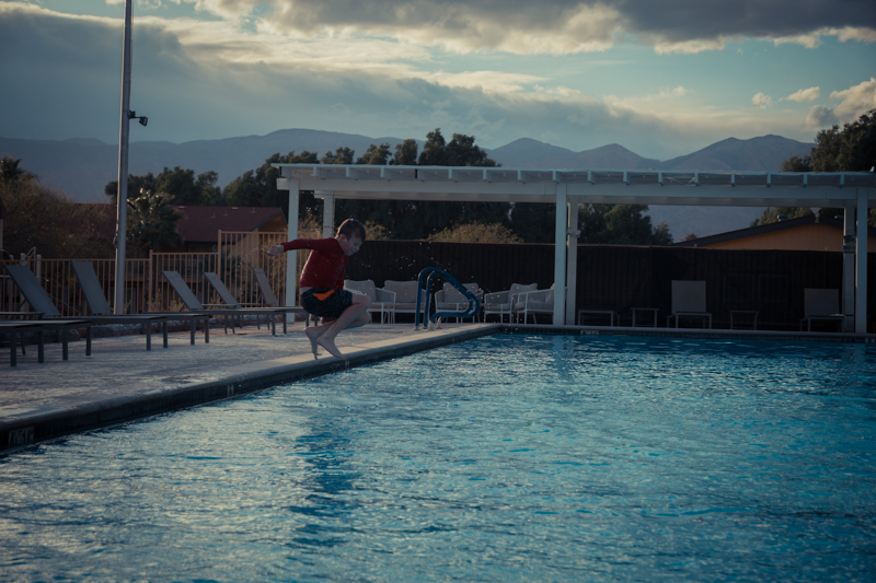 Later that afternoon, we swam in the resort’s natural spring-fed pool, surrounded by palm trees and mountains. It felt almost surreal—this lush, quiet pocket of life in one of the hottest places on earth. Death Valley holds the record for the hottest temperature ever recorded on Earth, 134°F, and yet here we were, celebrating Christmas in cool air, wrapped in stillness and calm.