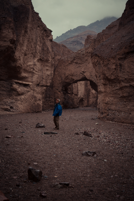 As the weather began to clear, we hiked out to Natural Bridge, a quiet canyon where centuries of flash floods have carved out smooth rock walls and a hidden arch. Death Valley is full of these contrasts—harsh yet delicate, barren yet full of stories shaped over time.