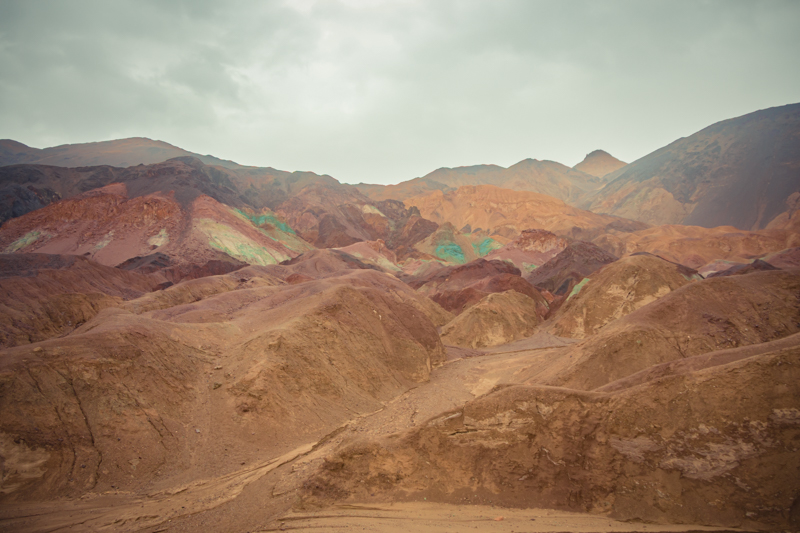 By the afternoon, we found ourselves at Artist’s Palette, and it quickly became one of our favorite stops. The hills were streaked with soft greens, pinks, yellows, and purples—colors created by the oxidation of different metals in the rock. It looked almost painted, like someone had brushed the desert with watercolor.
